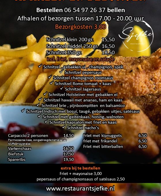 Geniet van de kwaliteit en smaak van ons restaurant, waar u ook bent. Naast dineren bij ons, bieden wij ook afhalen en bezorgen aan.